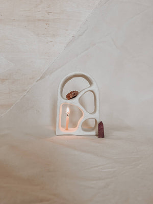 This versatile ceramic altar is designed to hold candles, incense, sacred objects, or ritual items — making it a meaningful addition to meditation corners, shrines, or personal sacred spaces.