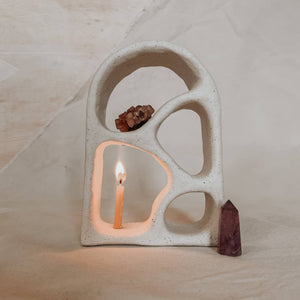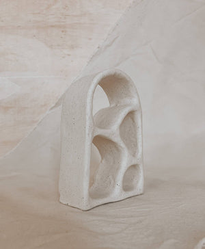 Each altar is handbuilt from durable earthenware clay and high-fired to 2160°F for lasting strength. Finished in a soft Beige Speckled Glaze, its sculptural form feels both modern and timeless. Handmade in Boulder, Colorado, with each piece one of a kind.