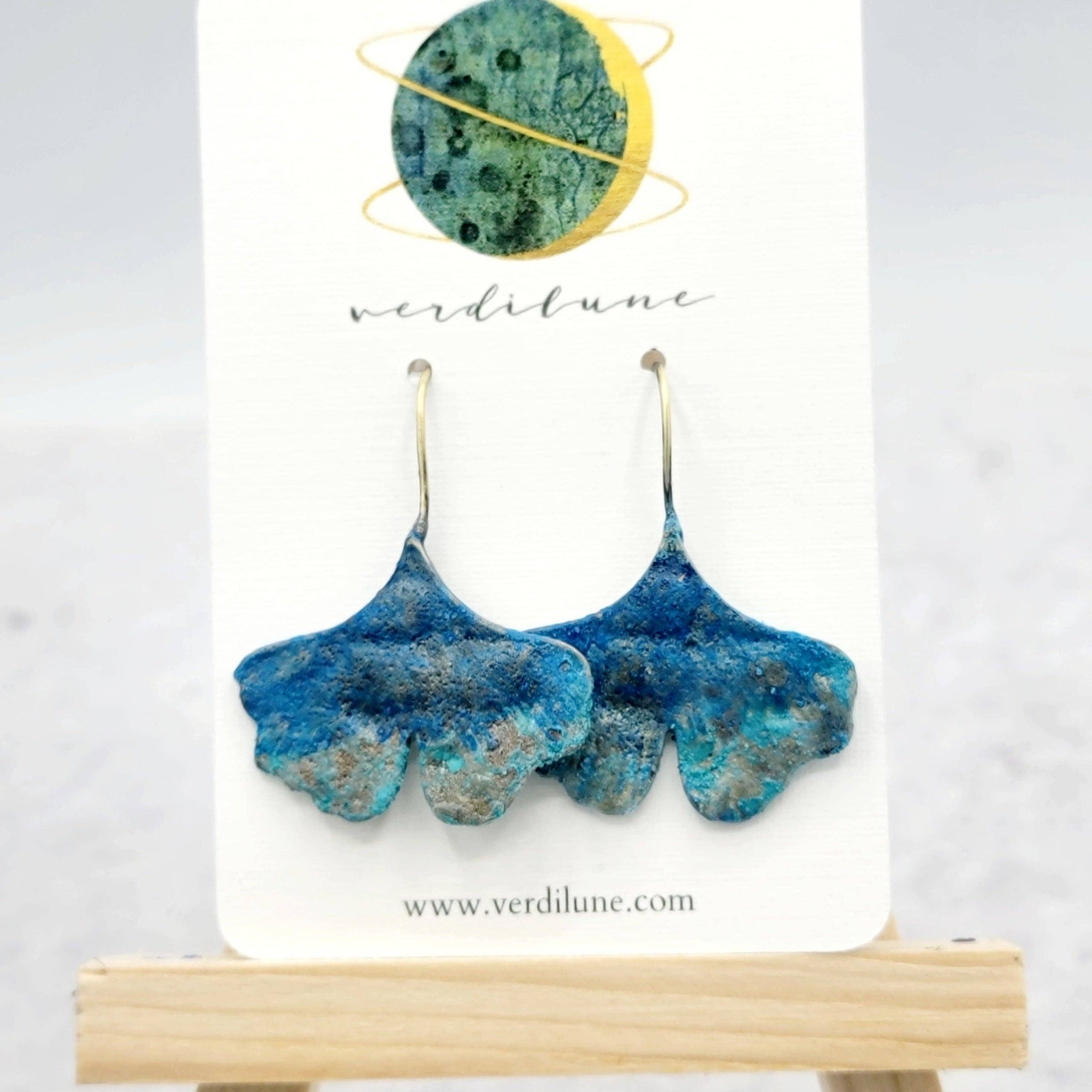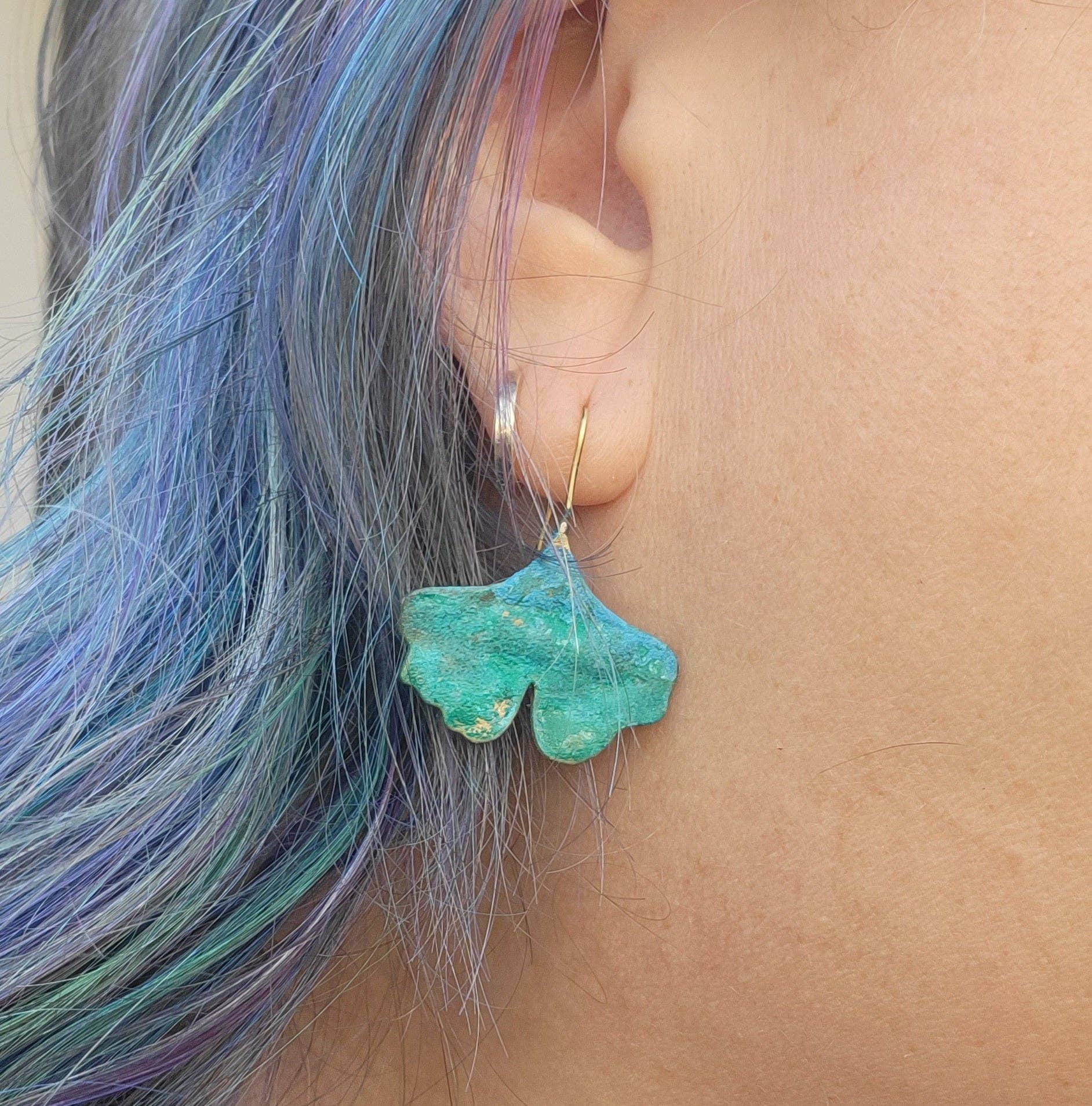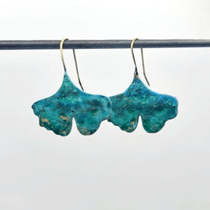 These earrings were created from upcycled brass, which has been formed in to 3D textured gingko leaves, with brass earwires.