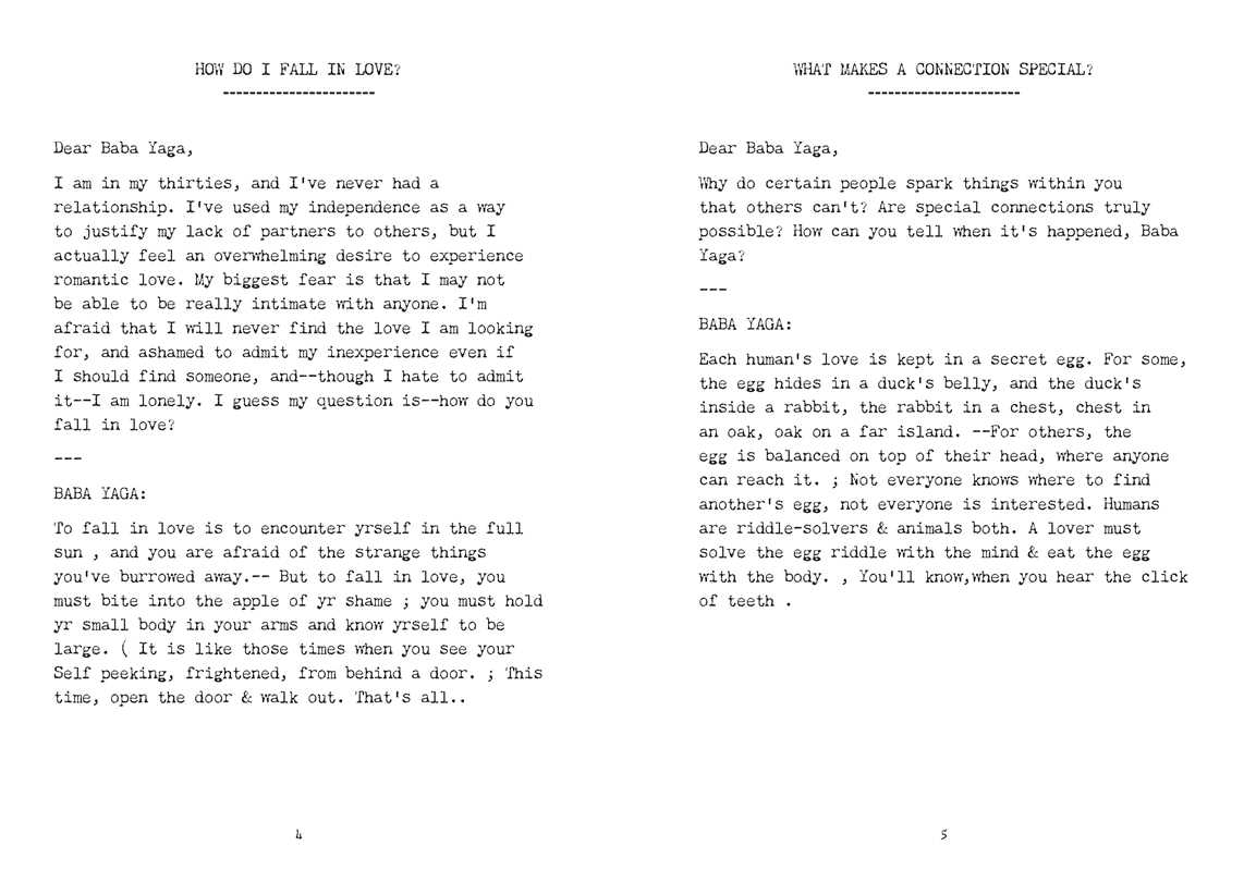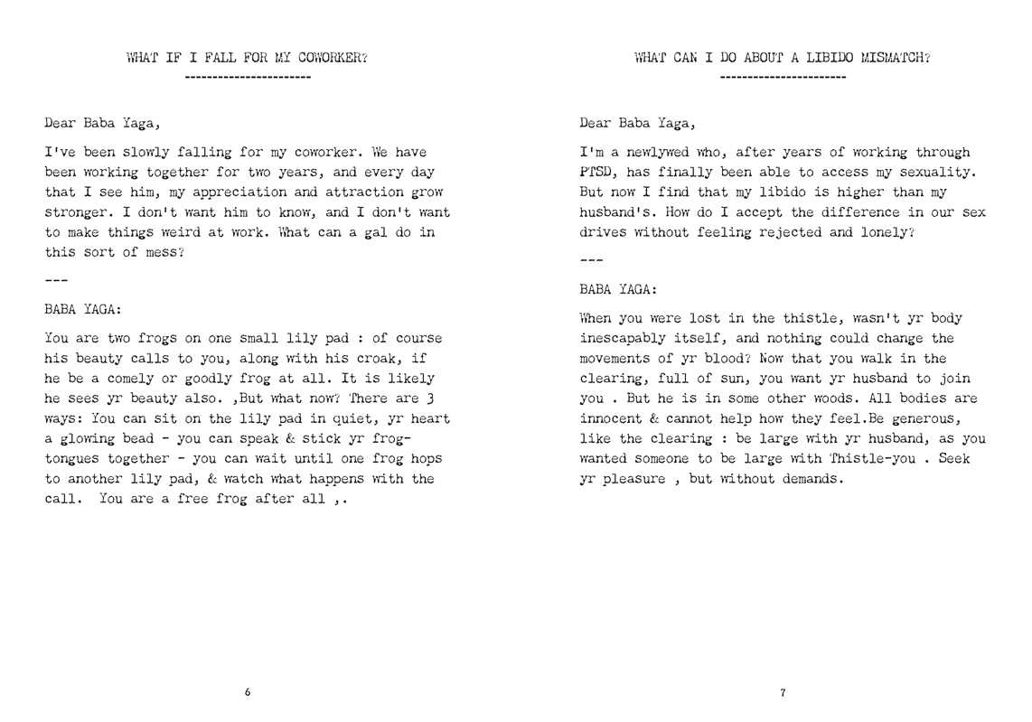 Baba Yaga offers more off-kilter remedies for the modern dilemmas of an unstable age using her uncanny style, poetic simplicity, and surprising candor. In this follow-up to Ask Baba Yaga: Otherworldly Advice for Everyday Troubles, award-winning writer Taisia Kitaiskaia once again embodies the legendary witch of Slavic folklore, Baba Yaga, to provide life advice to the questioning and the hurting. Answering real questions from readers, Baba Yaga provides responses in the form of short poems that are lyrical, surreal, sometimes funny, and always honest. During these difficult days, Poetic Remedies for Troubled Times provides literary self-help for readers who appreciate Baba Yaga's strange, surprising style and striking honesty.