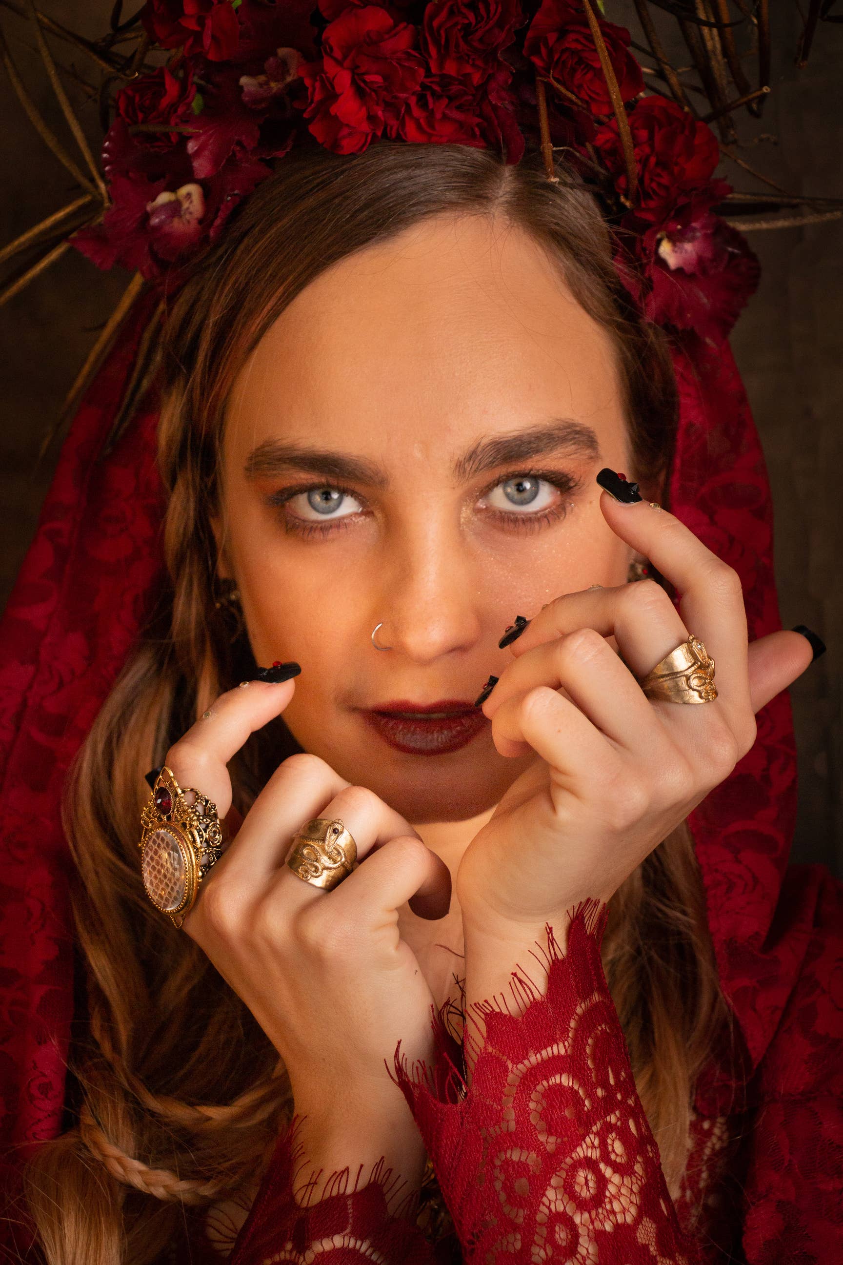 Approximately a size 8.5 -Bronze with antique gold overlay -Czech rhinestone