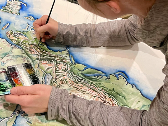 Appalachian Mountains Map Watercolor Art Print by Rosalie Haizlett