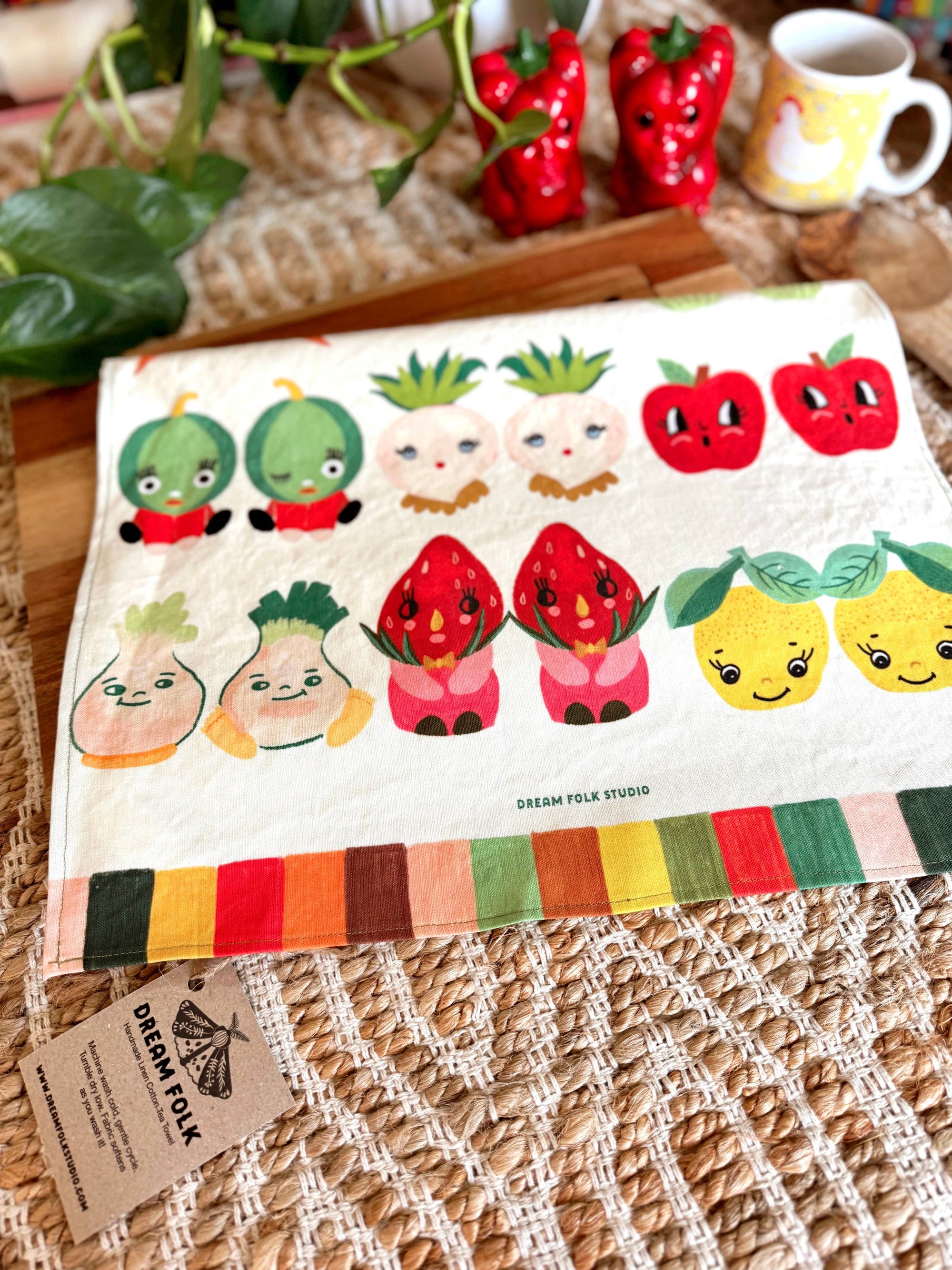 Vintage Salt and Pepper Shakers Linen Cotton Tea Towel