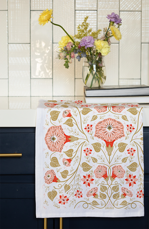 Celebrate the season of love with our Blossom and Vine Cotton Tea Towel, featuring hand-illustrated florals, hearts, and romantic vines. This charming design is perfect for adding a Valentine’s Day touch to any kitchen or dining space, blending floral beauty with a heartfelt message. Crafted from 100% flour sack cotton, this towel is oversized, absorbent, and softens beautifully with each wash. It’s perfect for drying dishes, wrapping a Valentine’s gift, or using as a festive accent for your holiday gatherings. A perfect gift for Valentine’s Day, weddings, or anniversaries, this design brings warmth and love to any home.