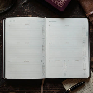For menstrual & moon cycle enthusiasts to advanced astrologers, as well as simply a beautiful planner. With daily exposure to moon cycles & astrology, you will be in tune to the energies of the moon and planets, and gain clarity in navigating your best year ahead.