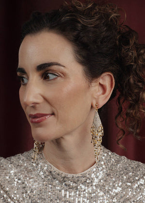 Starlight Fringe Beaded Handwoven Earrings (Silver)