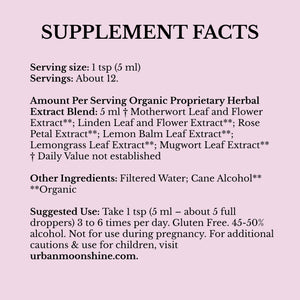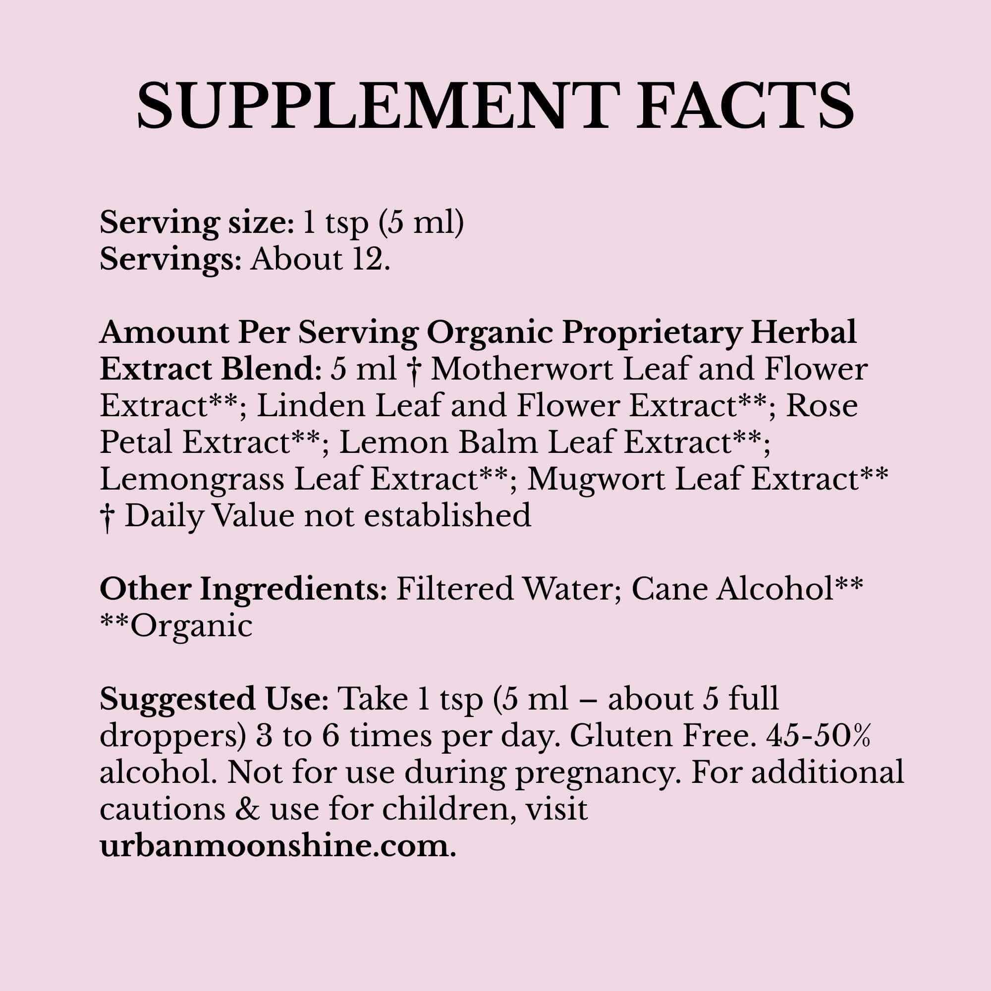 Details: Relieves occasional stress, worry, & tension. Uplifts the heart during transitions & times of grief. Provides daily nervous system support. Calm, peaceful, inspired. Ingredients: Organic proprietary herbal extract blend: organic motherwort leaf and flower; org.
