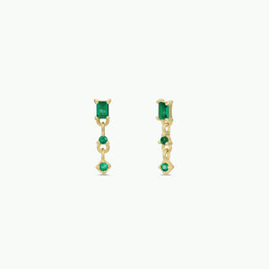 Mini Baguette Drop Earrings - Emerald