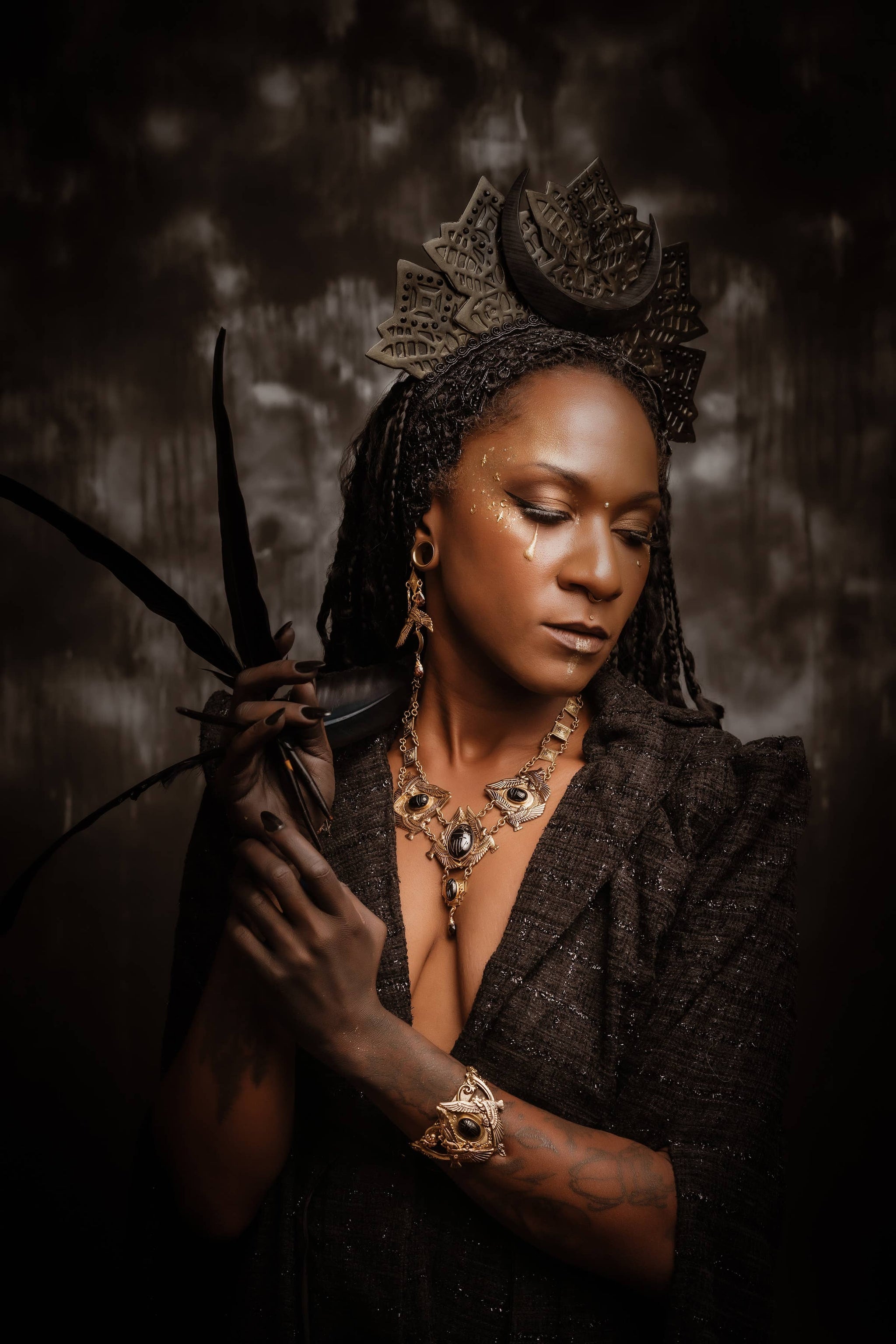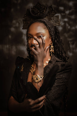 Nekhbet, vulture goddess of Upper Egypt, guards the threshold between worlds. With one wing extended toward the heavens and the other touching the earth, she is the protector of both the living and the dead. This brass cuff channels the fierce clarity of vulture spirit, the energy that transforms pain and decay into strength and renewal. The cuff features double vultures spreading wide; their wings frame the watchful eye of the goddess. Wear her vigilant wings to guard your soul through every shadowed passage.