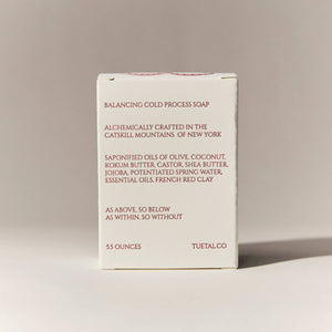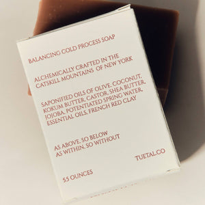 Each bar is approximately 5.5 ounces Contains saponified oils of Olive, Coconut, Kokum Butter, Castor, and Jojoba, potentiated spring water, essential oils, red clay