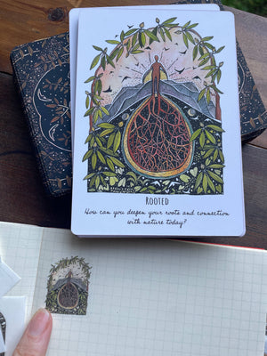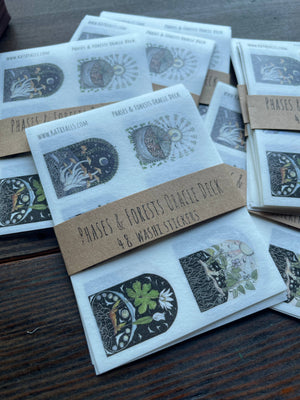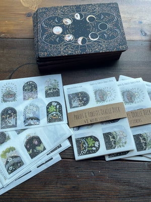 The images include 8 moon phases, and depictions of wildflowers and forest animals. includes all 48 oracles in 1” mini stickers.
